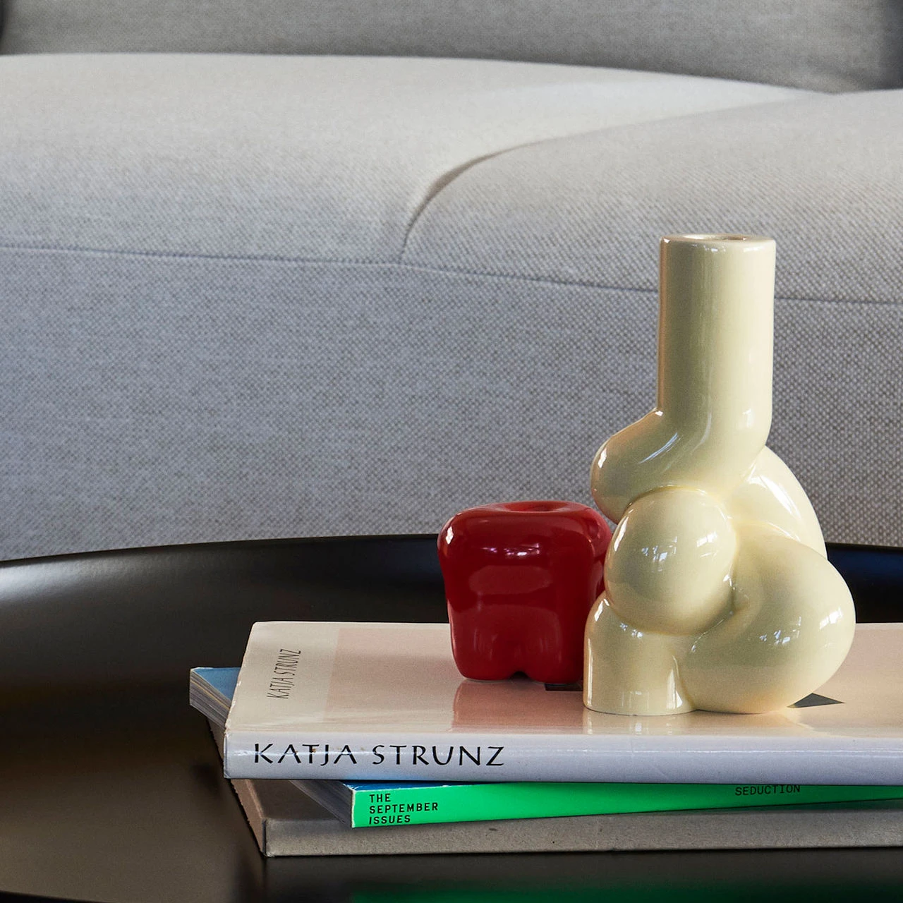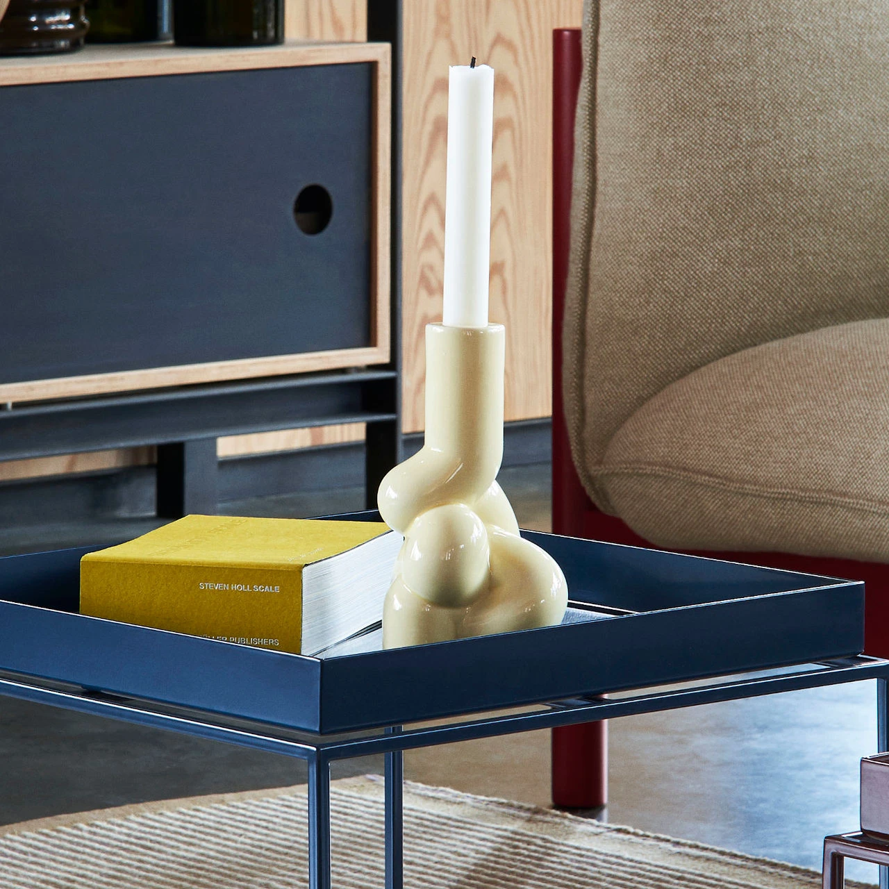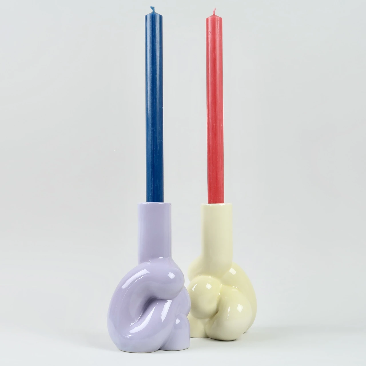 This stoneware ceramic candleholder is designed by a design duo called Wang and Söderström for HAY. The design partnership are interested in how digital and physical forms meet; the organic forms are developed in their studio before they are 3D printed and then moulded and cast at a ceramic factory in India.