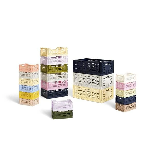 La jolie cagette couleur lavande de taille moyenne, de la marque Hay ♥ En plus d’être design, ces cagettes en plastique sont multifonctions et ont un système d’aération, qui leur permet de résister à l’eau. Repliables sur elles-mêmes, elles peuvent aussi bien s’empiler. Elles peuvent servir aux petits comme aux grands ! Disponible en différentes couleurs et tailles, n’hésitez pas à les combiner. Découvrez toute la gamme de cagettes Hay. L’avis de l’Atelier Kumo : Un indispensable pour organiser votre intérieur ! Dimensions : longueur : 40 cm, largeur 30 cm, hauteur : 14,5 cm Composition : plastique Poids : 0,500 kg