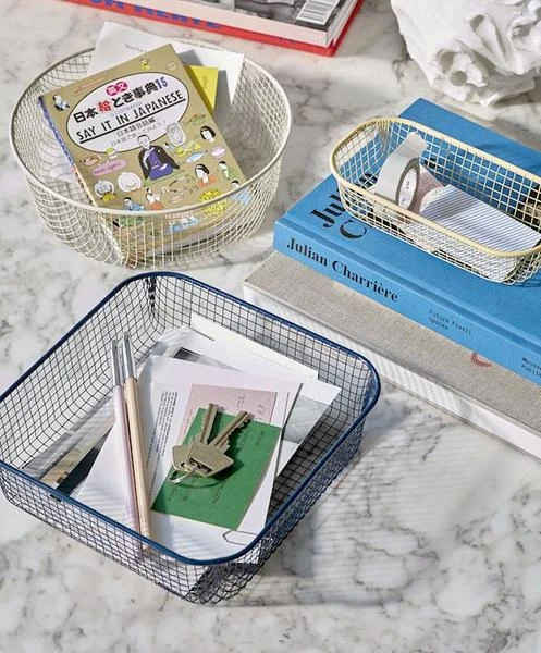 Cesta multiuso de metal para almacenar pequeños tesoros, en casa, en la oficina o donde quieras. Disponible en colores y formas diferentes. 20 x 20 x 5.5 cm. Hierro.