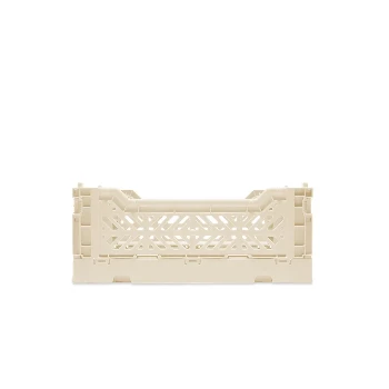 Creamy off-white polypropylene forms the lightweight, yet durable, structure of this tiny HAY crate, making it a seamless addition to even the most vibrant interior. The smallest of the Danish brand’s minimal storage solutions, its stackable, foldable build saves space in the home and is complete with a pair of carry handles for easy shelf access.