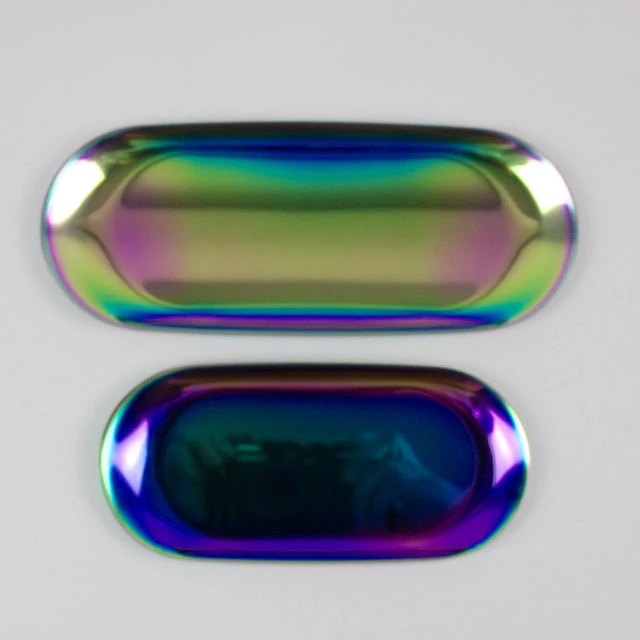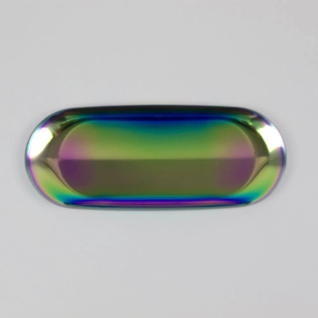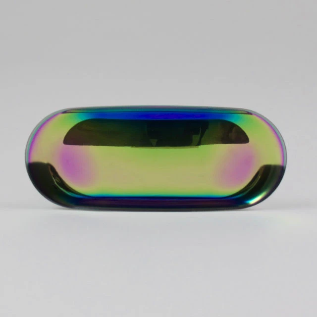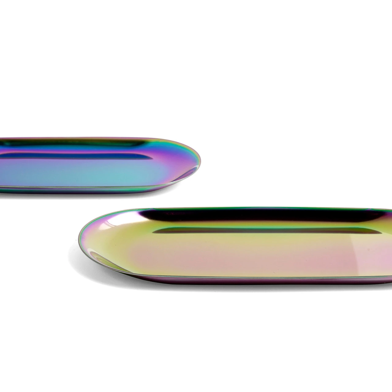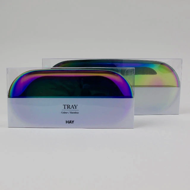 These stainless steel trays are designed by HAY and finished with a reflective surface that is multi coloured and changes in the light. They would make a great desk top addition – for the easy stowing of paperclips, rubber bands, keys etc. They are simply marked ‘Selected by HAY’ to the reverse. Each tray comes in a plastic display case.