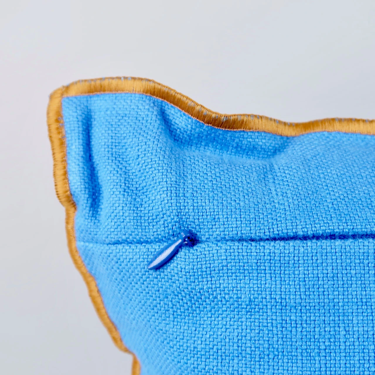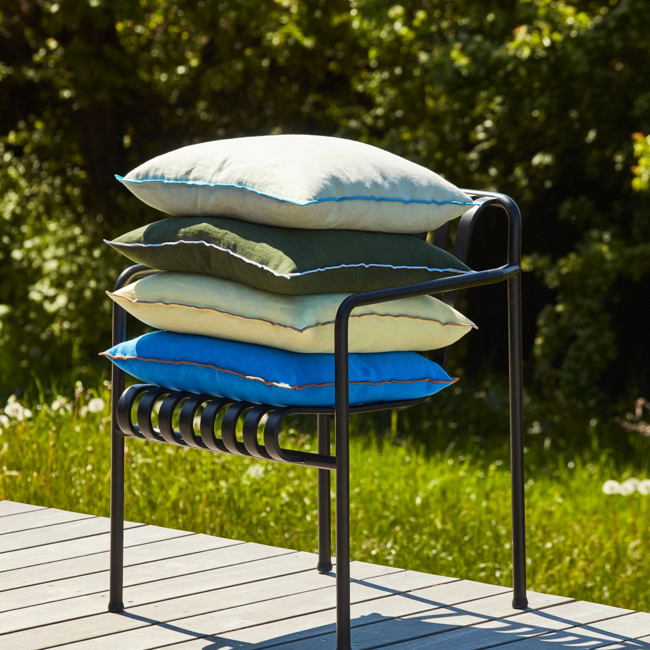 This cushion is made by HAY and the external fabric cover is a 75% linen, 25% cotton mix. It has a hidden zip closure on the reverse of the cushion with a colour matched zip and a small discrete HAY logo tag on the reverse as well.