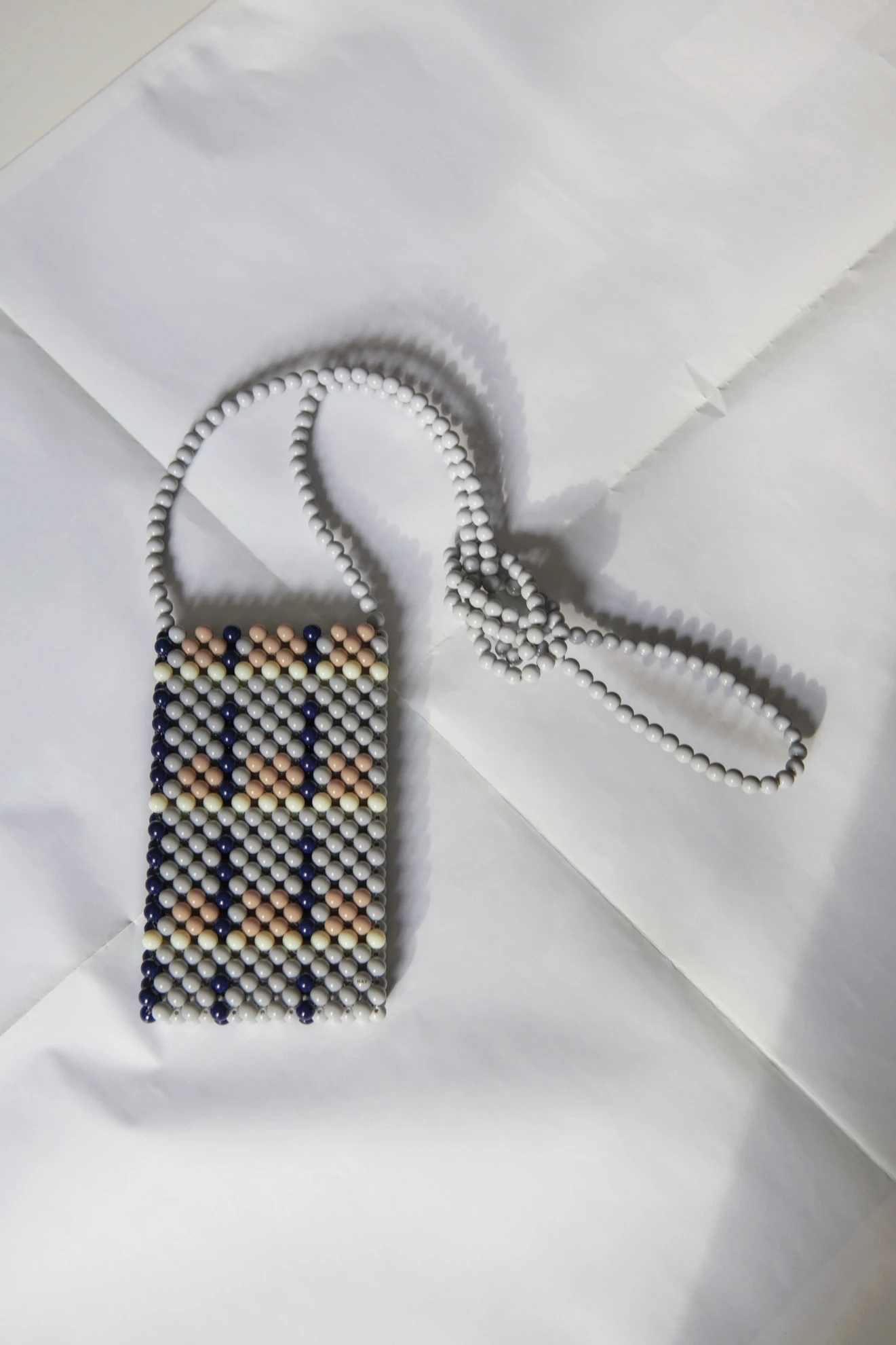 Designed for HAY by Ana Kraš, Perla is a unique and decorative phone holder made from miniature coloured beads that are hand threaded into beautiful patterns. Featuring a long shoulder strap, the holders can contain a wide variety of phones or other items. Also available in another design.