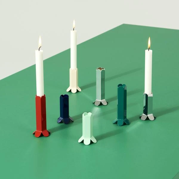 Diseñado por el dúo belga Muller Van Severen, el candelabro Arcs está formado por una cadena unificada de arcos verticales que envuelven la vela para crear una elegante silueta festoneada. Fabricado en aluminio y acero, Arcs Candleholder está disponible en dos alturas con diferentes opciones de color. Medidas: 5.5 x 9 cm