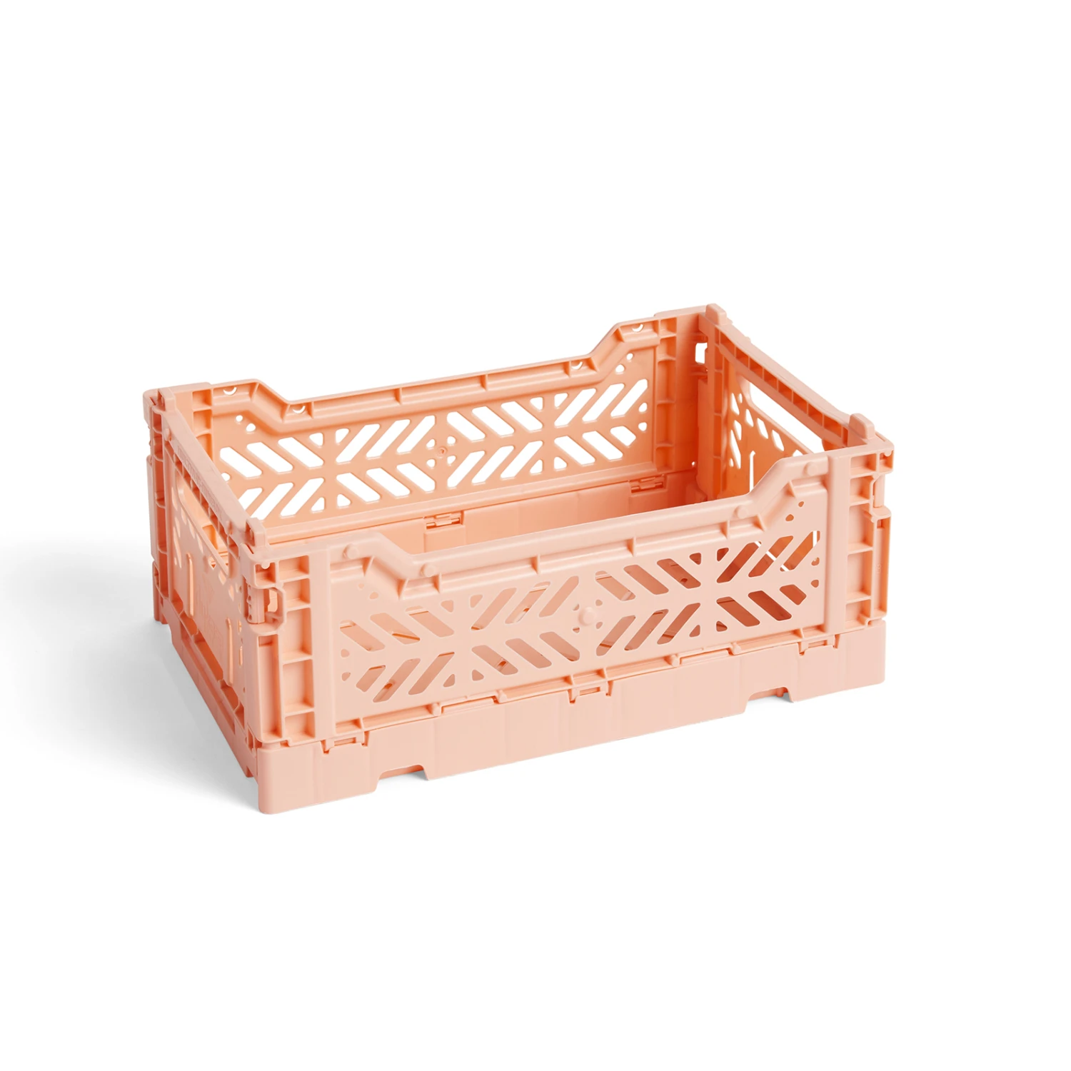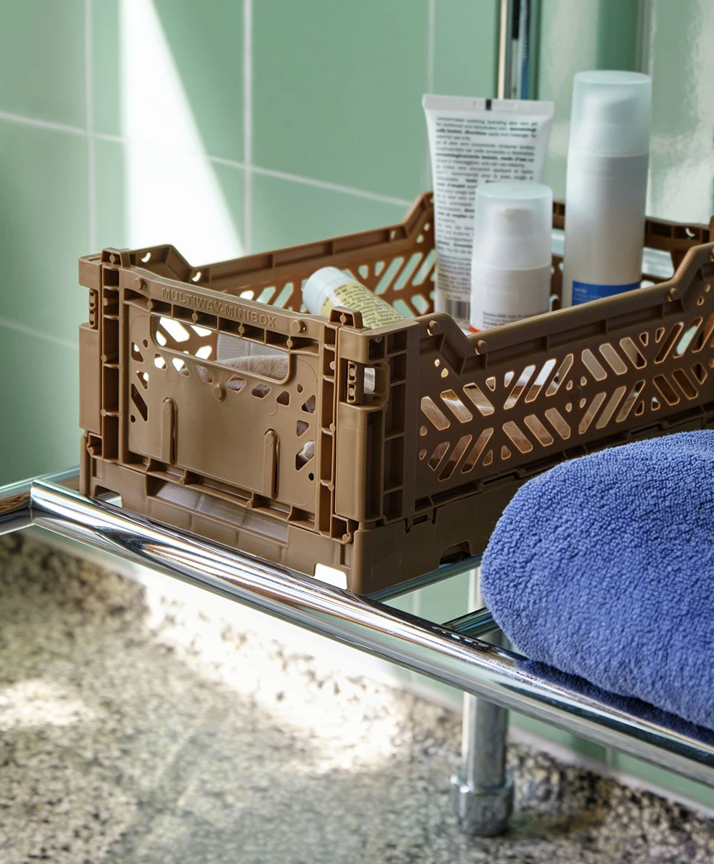 The propylene colour crate by HAY are a fun multifuncional crate ventilated and stackable.