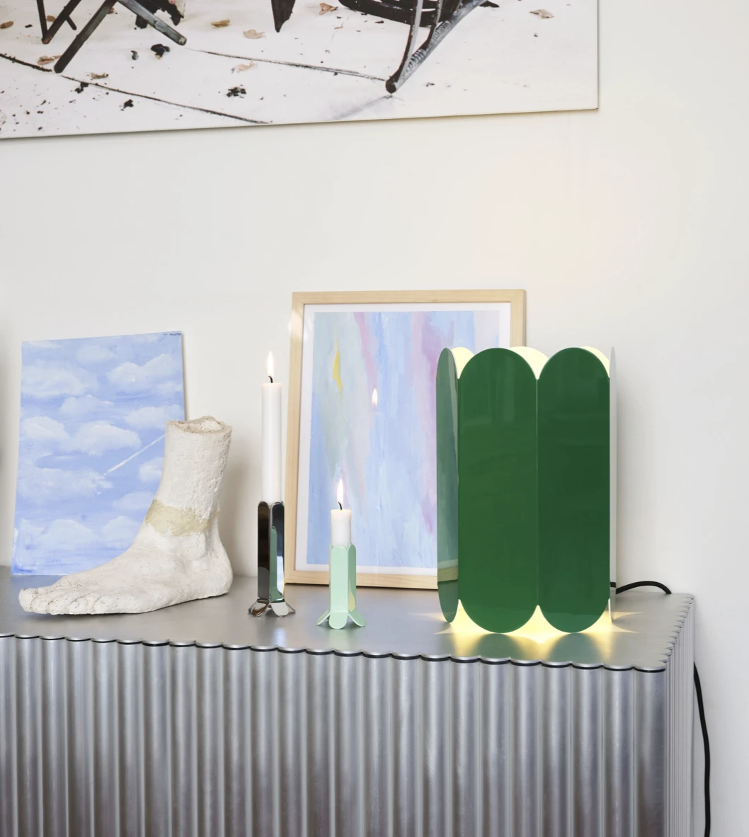 Designed by Belgian duo Muller Van Severen, the Arcs Candleholder is formed by a unified chain of vertical arcs that encase the candle to create an elegant, scalloped silhouette.
