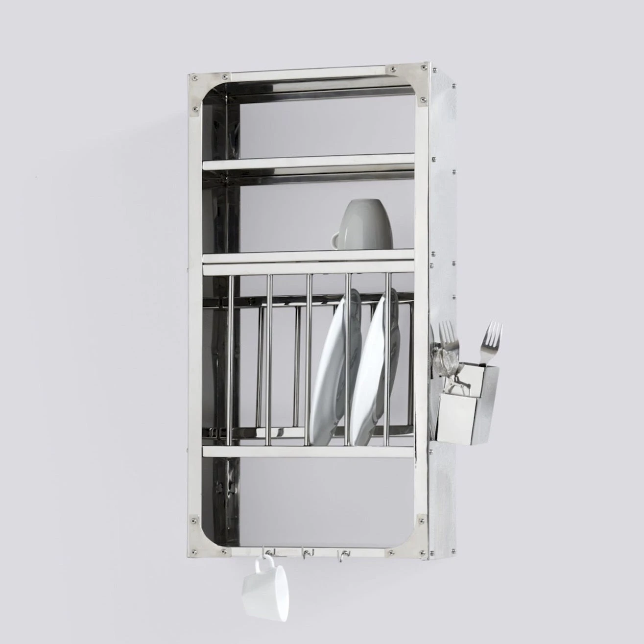HAY’s Indian Plate Rack is made in strong and durable stainless steel. The compact and fuss-free design is easy to mount on a wall and features a variety of shelves and compartments for storing cutlery, crockery and other kitchen utensils. Materials: Stainless Steel Dimensions: W40 X D24 X H78.5 Delivery: In Stock