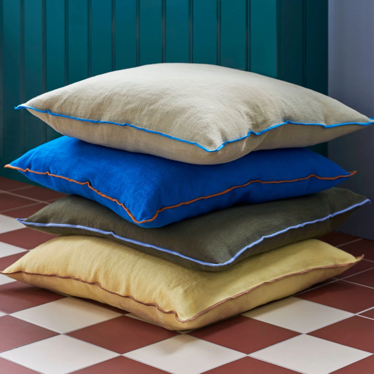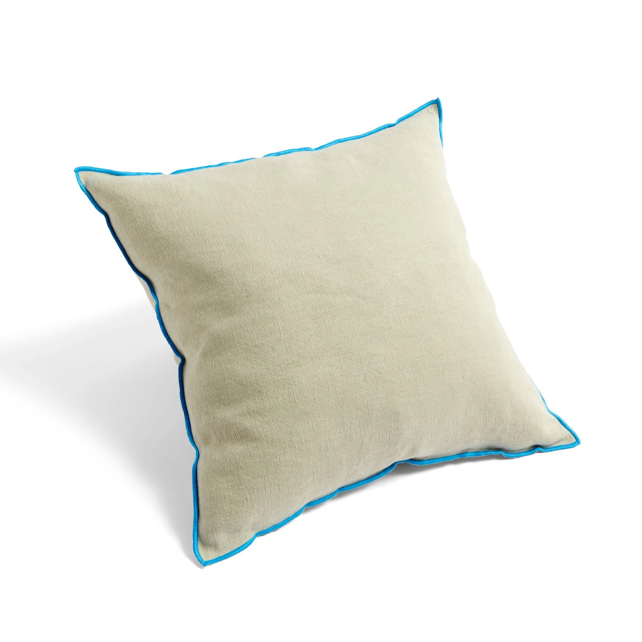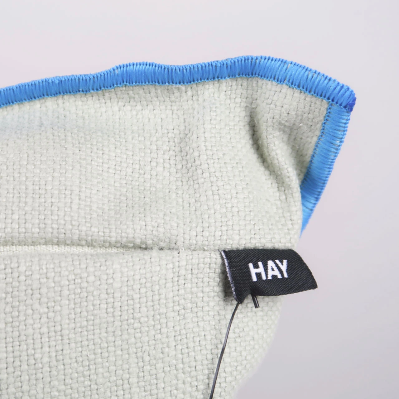 This cushion is made by HAY and the external fabric cover is a 75% linen, 25% cotton mix. It has a hidden zip closure on the reverse of the cushion with a colour matched zip and a small discrete HAY logo tag on the reverse as well.