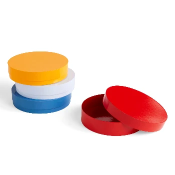 Colour Storage Round is a series of versatile and decorative storage containers by HAY. Made in a durable, extra thick FSC-certified cardboard mix with a beautiful glossy finish, the circular boxes can be used for storing and organising a wide range of items on desks, shelves or cupboards. The boxes can be stacked in colourful displays or used alone as a simple statement.