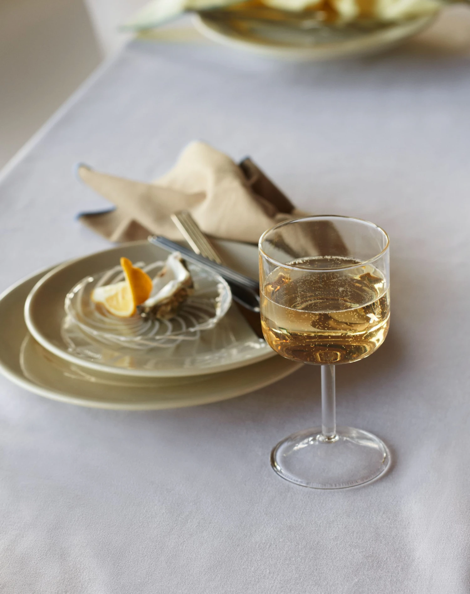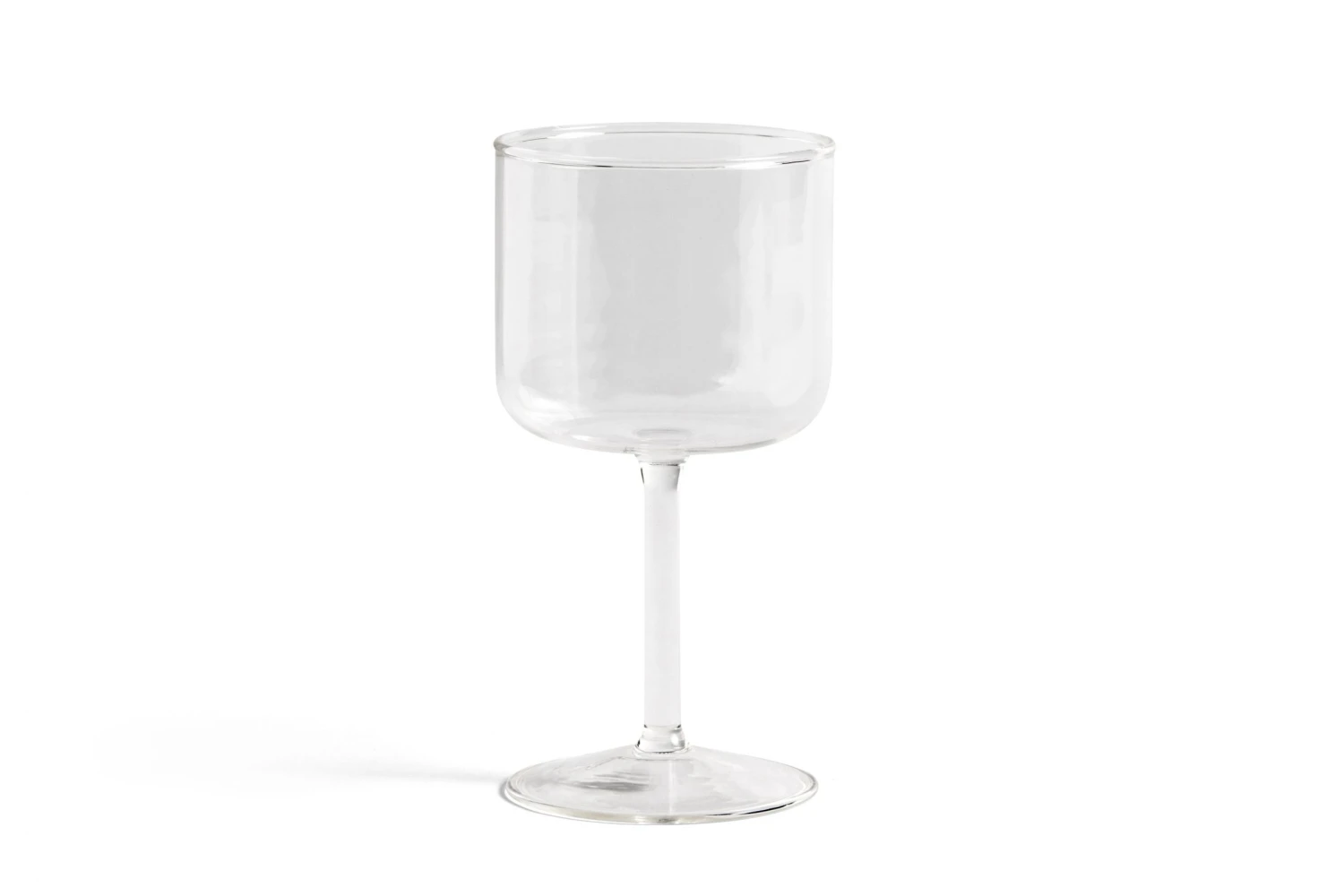 Tint Wine Glass is a collection of wine glasses made in tinted and clear borosilicate glass. The elegant, simple design is suitable for serving wine, as well as water, juice and other soft drinks. The glasses come in sets of two, available in different colours.