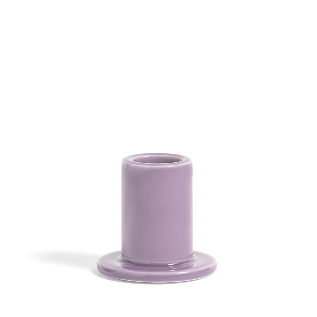 Portavelas HAY de loza con un esmalte semitransparente en colores suaves. Diseño tubular con una base que recoge la cera. Bello y minimalista, queda bien combinado con otros colores y/o tamaños y también sólo.