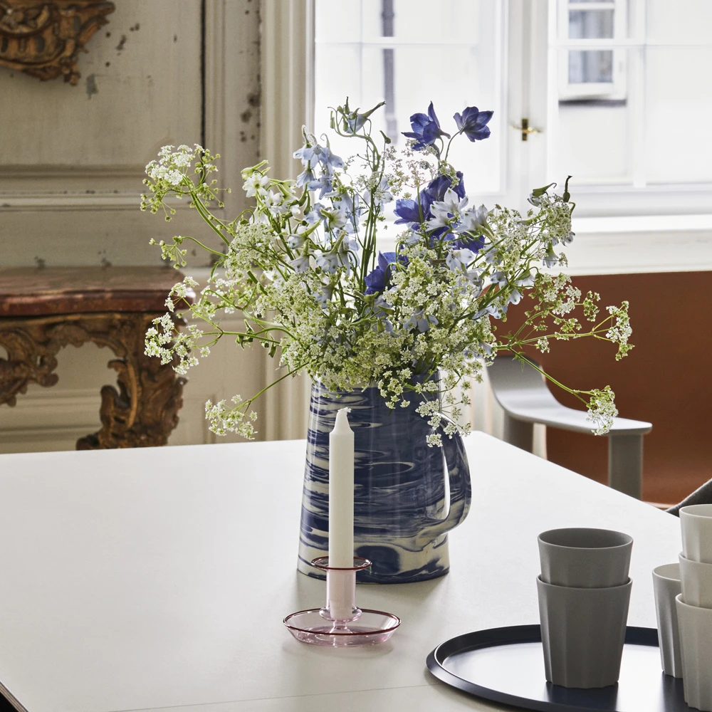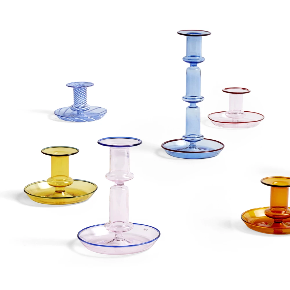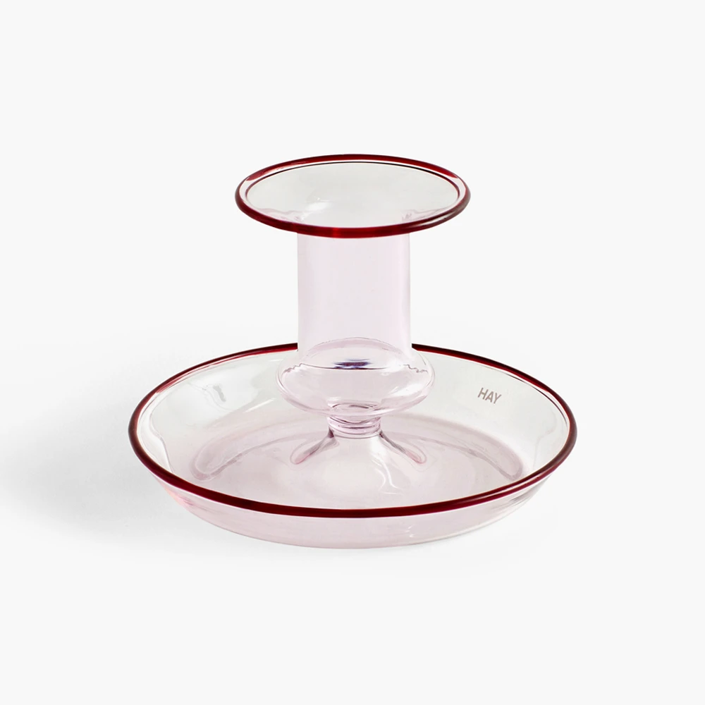The elegant and playful Flare Candleholder from HAY is crafted out of colored, mouth-blown glass and features tinted rims that catch the eye.