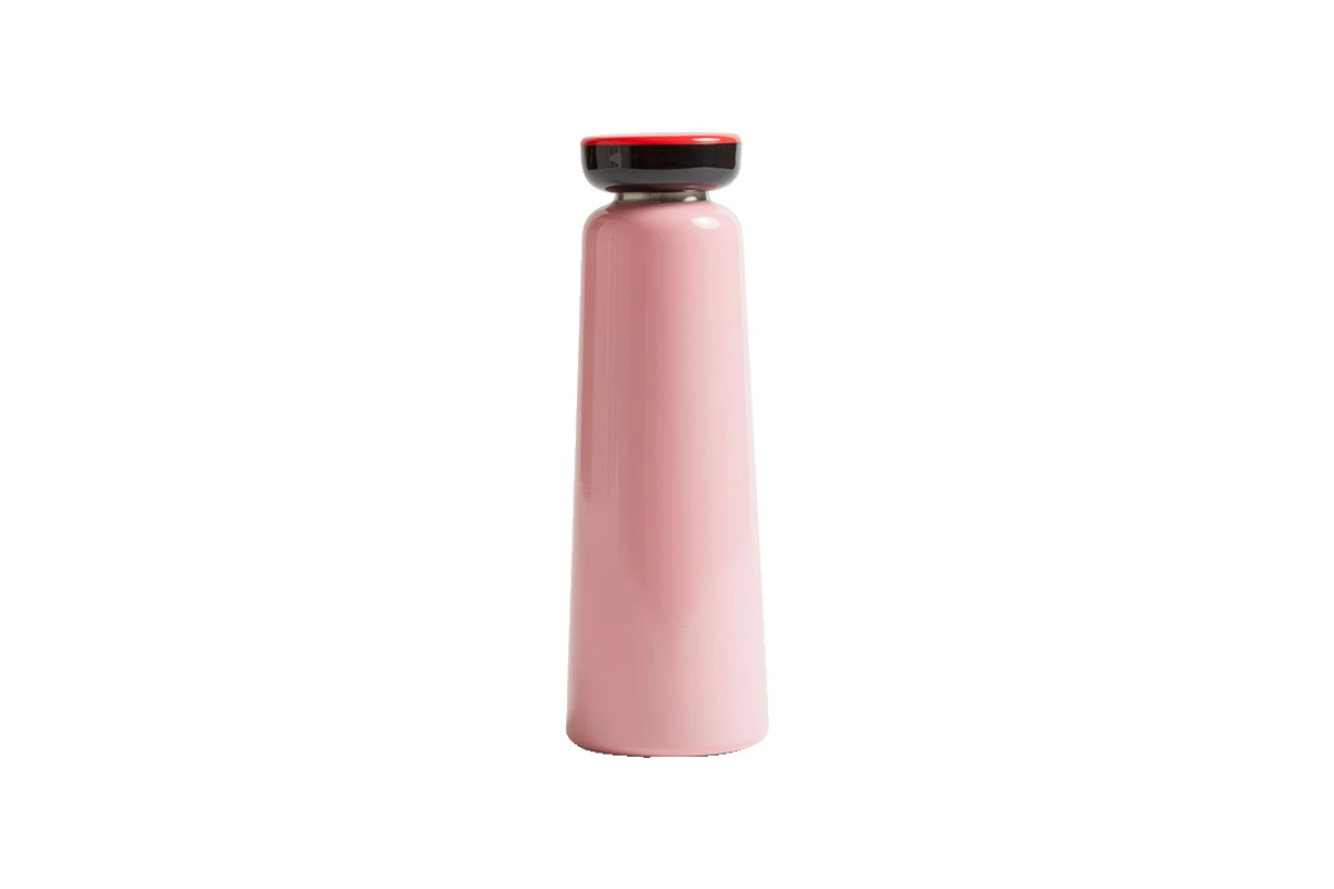 The contrasting colours make for a playful expression with this George Sowden’s bottle series. Crafted in stainless steel with a plastic screw lid, the functional design is an effective solution for keeping your drinks hot or cold at your ideal temperature. Highly practical, this Hay bottle is watertight thanks to its screw cap, and with its compact size, it’s easy to carry wherever you go. With its beautiful colours and elegant design, the Sowden bottle by Hay is your new constant companion. Designed by George Sowden, the HAY Sowden Bottle is available in range of playful colours, to suit everyone’s style. The bottle itself is stainless steel, with the functionality of being able to maintain the temperature of both hot and cold drinks, and the screw lid is made of polypropylene plastic. 0.35litre capacity.
