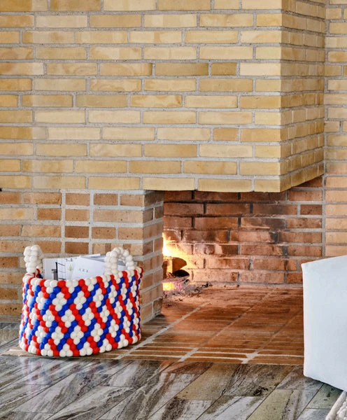 Bead Basket è composto da centinaia di palline di feltro che vengono arrotolate singolarmente a mano in motivi grafici colorati. SPECIFICHE Materiali: 100% Lana Misure: Ø40 X H27