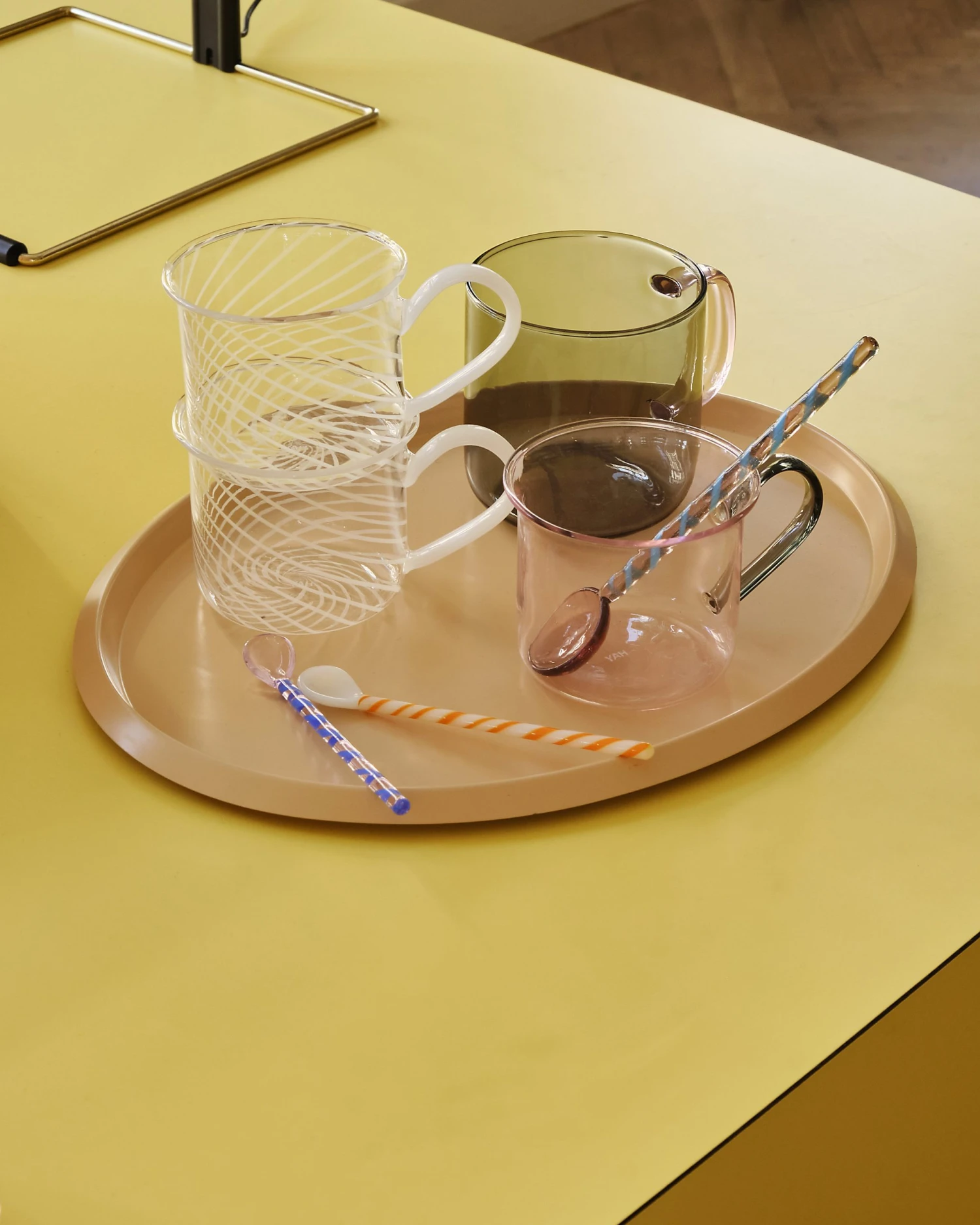 Coloured borosilicate glass is used to create this distinct and functional mug and cup duo. The mug has a rounder, more symmetrical shape, while the cup has a rimmed edge and arched handle. They’re dishwasher safe and this set of two cups from HAY are a clean and modern addition to any kitchen.