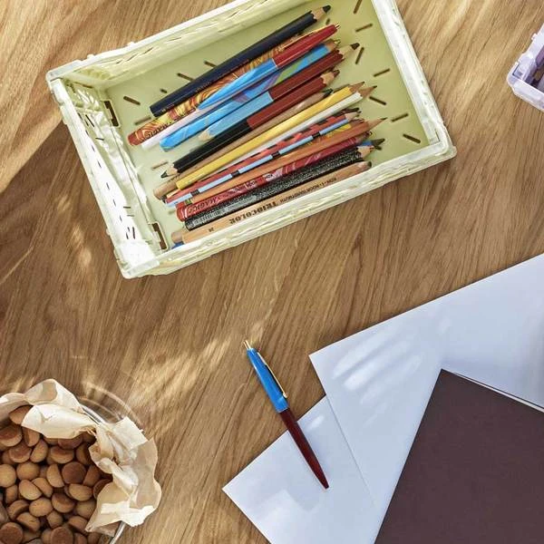 La cagette en taille S, couleur citron de la marque Hay ♥ En plus d’être design, ces cagettes en polypropylène sont multifonctions. Elles s’intègreront parfaitement dans toutes les pièces de votre intérieur. Elles ont un système d’aération, qui leur permet de résister à l’eau. Repliables sur elles-mêmes, elles peuvent aussi bien s’empiler. Elles peuvent servir aux petits comme aux grands. Disponibles en différentes couleurs et tailles, n’hésitez pas à les combiner ! Découvrez toute la gamme de cagettes Hay. L’avis de l’Atelier Kumo : Un indispensable pour organiser votre intérieur et un nouveau coloris qu’on adore ! Dimensions : longueur : 26,5 cm, largeur : 17 cm, hauteur : 10,5 cm Composition : Polypropylène