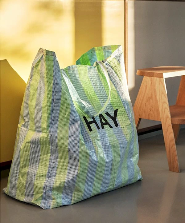 Made in a strong and durable material with 80% recycled plastic, the Candy Striped series is a collection of colourful and practical bags for carrying shopping and other everyday items. Available in different designs that vary from a small, hand-held bag to a super-sized shopper.