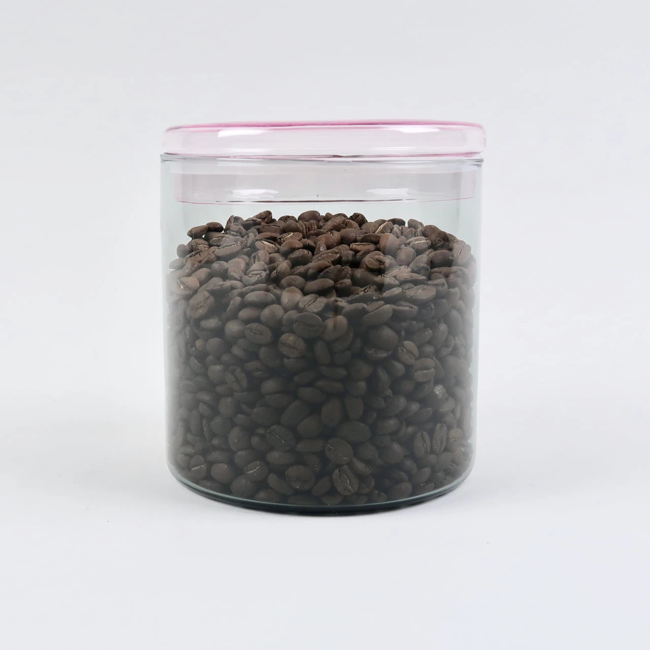 This jar is made from borosilicate glass. The body of the jar is a subtle grey colour while the lid is made from pink borosilicate glass. A useful storage jar in the kitchen or the bathroom. You could use it for coffee beans or tea bags in the former and cotton wool or buds in the latter.