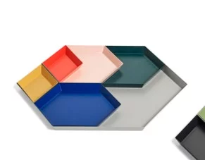 Kaleido is a series of trays with a geometric shape, which can be assembled as desired. It is a tray made of powder-coated steel, winner of the European Consumers Award 2014. Its versatility is the element that distinguishes it most, because it can be used as a tray to serve coffee, an aperitif or as a pocket tray, but it can be exhibited as a protagonist on a table top.