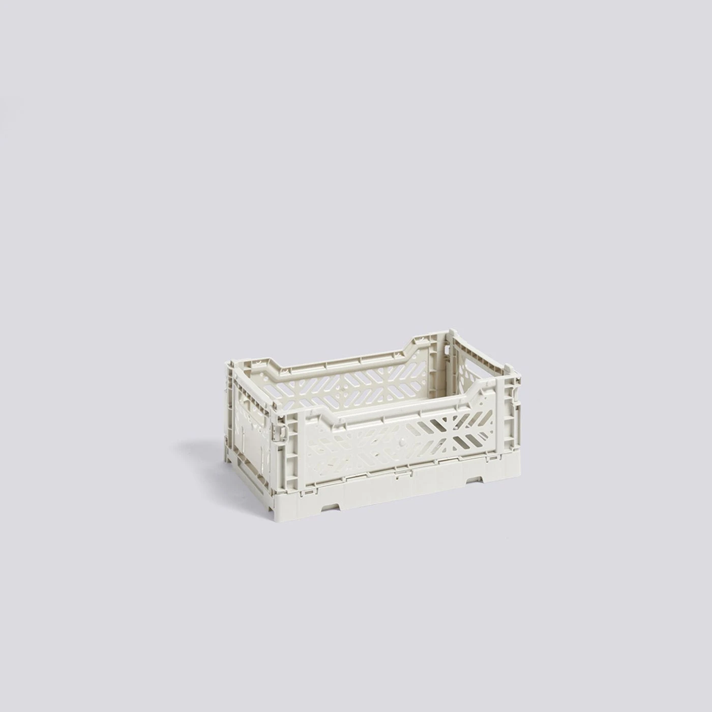 Multifunctional plastic crate with ventilated and stackable design in Light Grey. Dimensions: Small: L26.5 X W17 X H10.5cm Material: Polypropylene Delivery: Ready to Ship