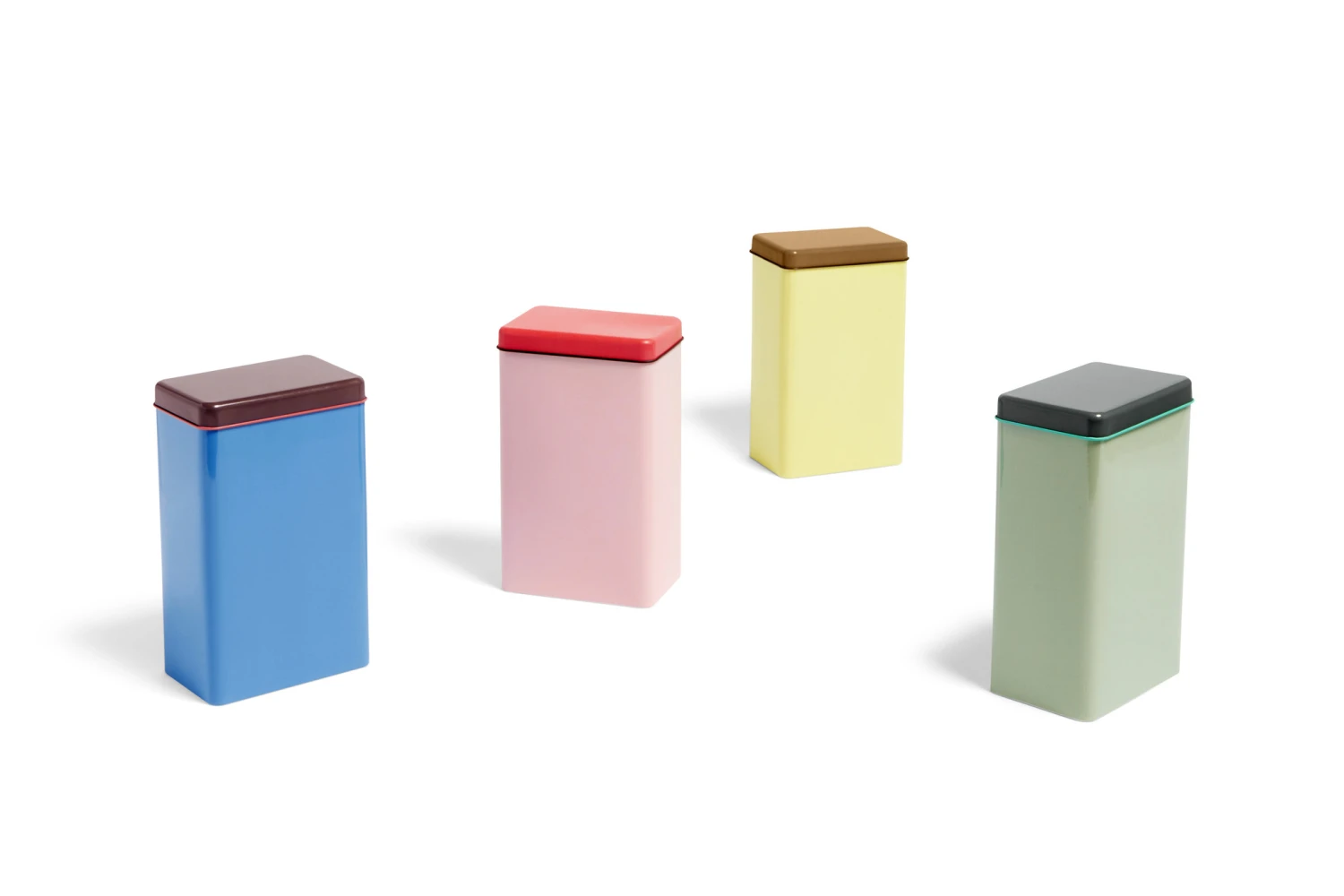 Designed by George Sowden, the Sowden Coffee Tin is a colourful stainless steel container with an airtight lid that is suitable for coffee and other dry foods. Available in a variety of colours and all very nice to combine.