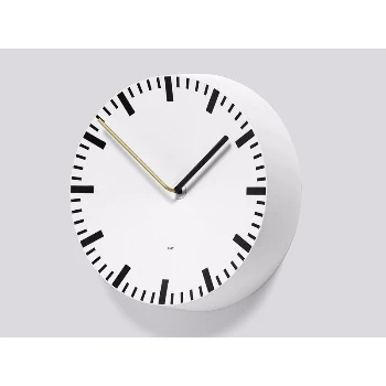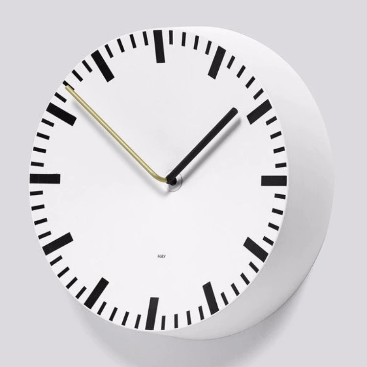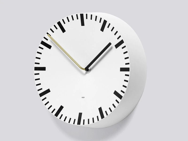 The Hay analog wall clock designed by Shane Schneck is an aluminum clock inspired by the classic barometer.