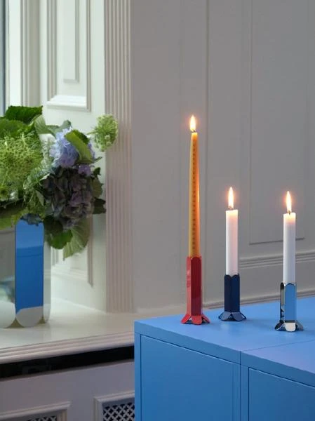 De artistieke Arcs kandelaar is ontworpen door het Belgische designduo Muller Van Severen. De verticale bogen sluiten zich als een ketting om de kaars en geven een elegant silhouet. De zware kaarsenhouder is verkrijgbaar in verschillende kleuren en formaten, mix & match! Materiaal: Aluminium en staal Afmetingen: Ø 5.5 x H 9 cm Kleur: spiegel
