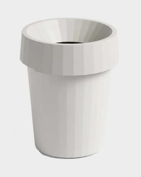 Cestino, portaombrelli, contenitore. Thomas Bentzen ha disegnato un oggetto semplice come un cestino rendendolo elegante e particolare. La superficie sfaccettata crea un piacevole effetto di luce e ombra. SPECIFICHE Misure: Ø30 x H36.5 cm Materiale: Polipropilene riciclabile
