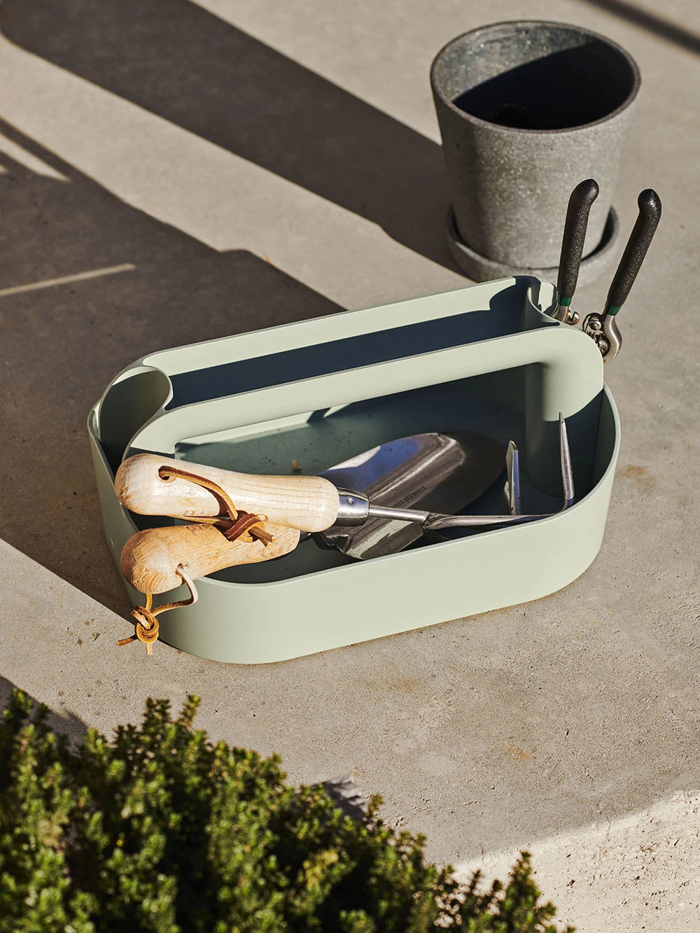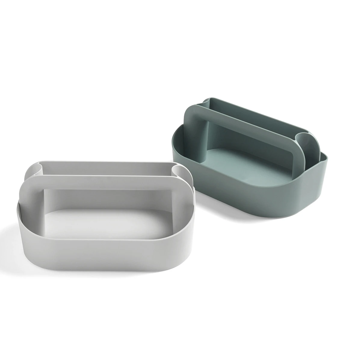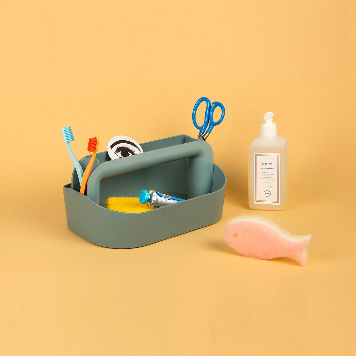 The handy and practical plastic toolbox is designed by Shane Schneck for HAY. It has extra compartments at the sides and top of the handle to optimise storage space. You will find it useful for a many places: kitchen, office, bathroom, etc. Any place that needs to be tidy up. Made in ABS plastic.