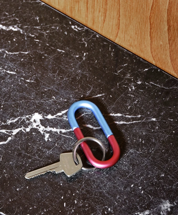 The classic functional and utilitarian snap hook has been updated in HAY’s Cane Keyring. Made in durable aluminium with a two-tone coating.