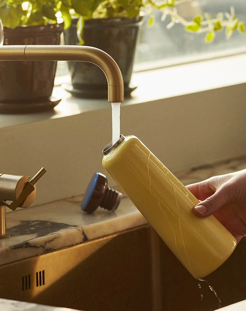 From the Sowden collection for HAY, following the same line of colors and materials. Crafted in stainless steel with a plastic screw lid, the functional design is suitable for containing hot and cold drinks. Keeps drinks hot for 12 hours and cold for 24 hours.