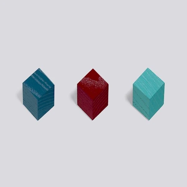 Lex Pott’s Iso Hooks are small geometric hooks that give the illusion of a cube rising from the wall. Made in ash wood, they can be used to form a coat rack or to create a sculptural wall decoration. Size: W3 X D3. Material: Painted ash.