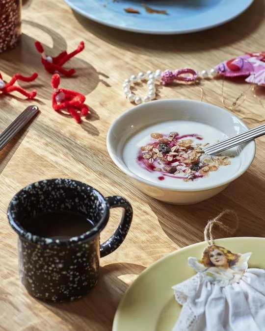 La colección Enamel de HAY comprende una amplia serie de platos, platos y utensilios de cocina de uso diario.