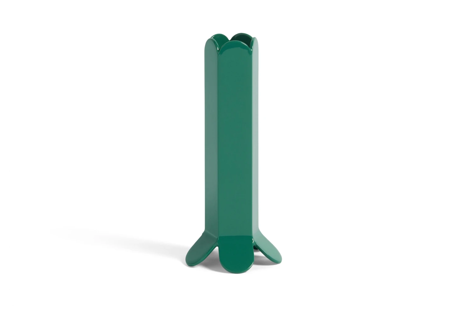 Designed by Belgian duo Muller Van Severen, the Arcs Candleholder is formed by a unified chain of vertical arcs that encase the candle to create an elegant, scalloped silhouette. Made in aluminium and steel, Arcs Candleholder is available in two heights with different colour options.