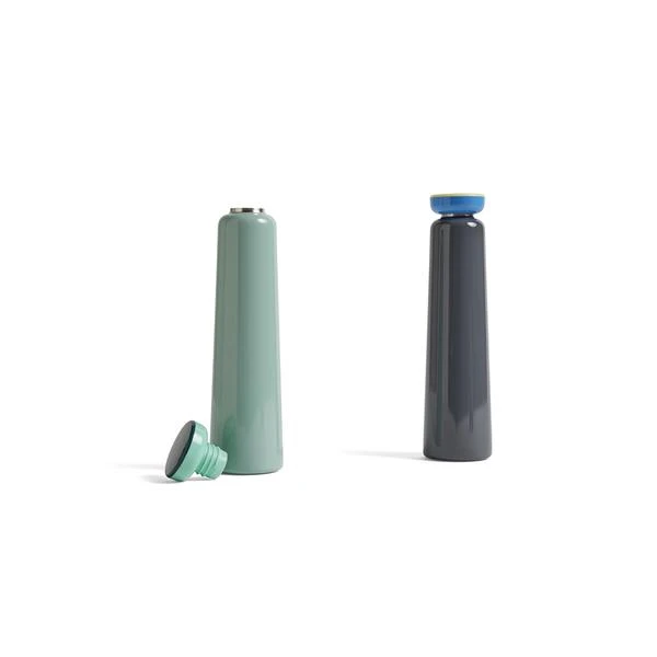 La bouteille thermos Sowden menthe (0,5 L) de chez Hay. Elle convient pour les boissons chaudes et froides ♥ La bouteille thermos Sowden menthe de la marque Hay a été conçu par le designer Georges Sowden. Décliné en plusieurs couleurs et plusieurs tailles inspirées du mouvement Memphis. La gourde isotherme existe également en couleur gris et en plus petit format (0,35L). L’avis de l’Atelier Kumo : Un objet design à emmener partout ! Dimensions : diamètre : 7 cm, hauteur : 26 cm Composition : acier inoxydable et polypropylène Couleur : menthe Contenance : 50 cl Poids : 0.350 kg Conseil : convient pour les boissons chaudes et froides Georges Sowden est un designer réputé. Il a reçu plusieurs prix prestigieux dont le Compasso d’oro. Dans les années 80 en Italie, il a participé à la fondation du mouvement Memphis dans lequel sont travail s’inscrit. Cette bouteille isotherme en acier inoxydable conservera vos boissons chaudes et froides dans tous vos déplacements. Son design épuré et ses couleurs tendances font de cette gourde un objet iconique. Son bouchon en polypropylène à vis vous garantira une étanchéité par faite dans tous vos déplacements.