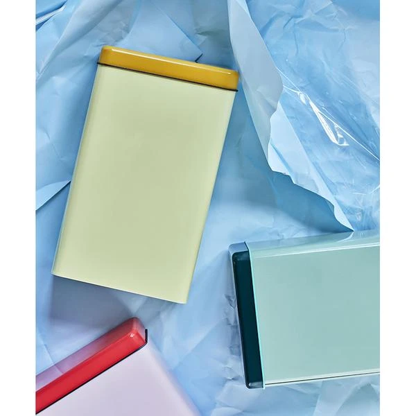 La boite en métal Sowden, couleur jaune avec son couvercle orange de la marque Hay ♥ La boite Sowden métallique, couleur jaune avec son couvercle orange de la marque Hay. Conçu par George Sowden, cette boite de rangement intemporelle a été imaginé pour une utilisation seule ou en composition dans votre intérieur. Son design vintage, ses couleurs vives et contrastées vous apporteront de la gaieté et s’intégreront parfaitement à votre cuisine. Installé sur votre plan de travail, sur une étagère ou dans un meuble, elles apporteront une touche colorée à votre intérieur. Son couvercle est hermétique, parfait pour le café et les aliments secs. Découvrez les autres coloris . L’avis de l’Atelier Kumo : On adore le design et le mouvement architectural des années 80 ! Dimensions : largeur : 12 cm, longueur 8 cm hauteur : 20 cm Couleur : boite : jaune, couvercle : orange Composition : fer