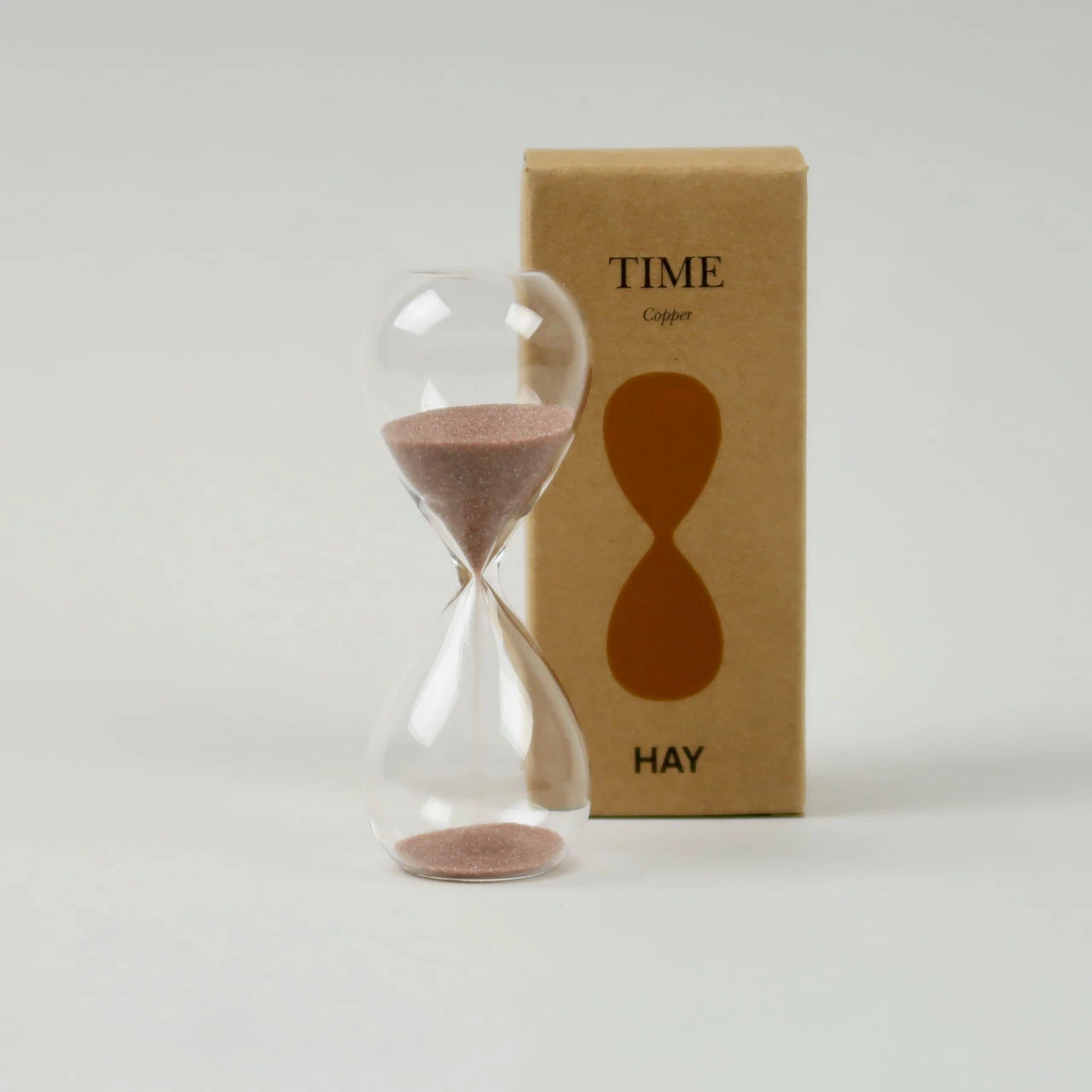 This HAY timer glass – it seems ridiculous to call it an hour glass – is the perfect accompaniment to helping you with your poached eggs. It takes 3 minutes for the sand to drop from one side to the other . . . a more gentle reminder to lift your eggs from their slightly vinegary bath than the nagging beep of an oven timer.