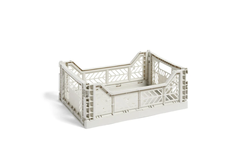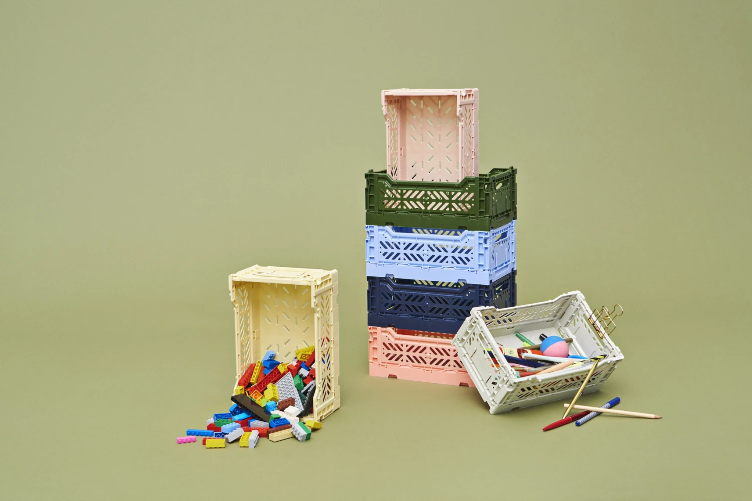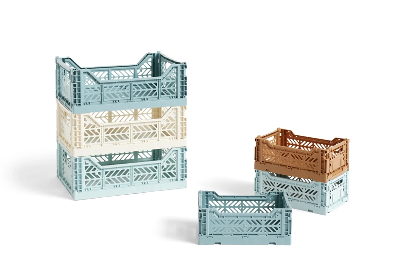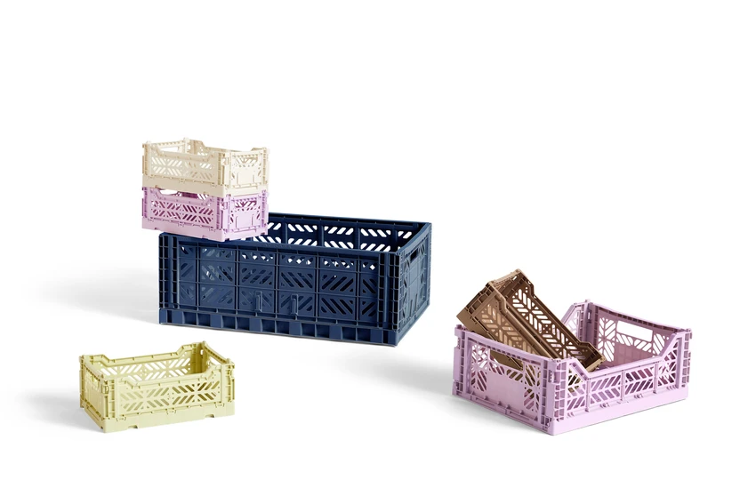 Multifunctional plastic crate with ventilated and stackable design in a variety of different colours and sizes. Flat for easy shipping and self click-assembly.