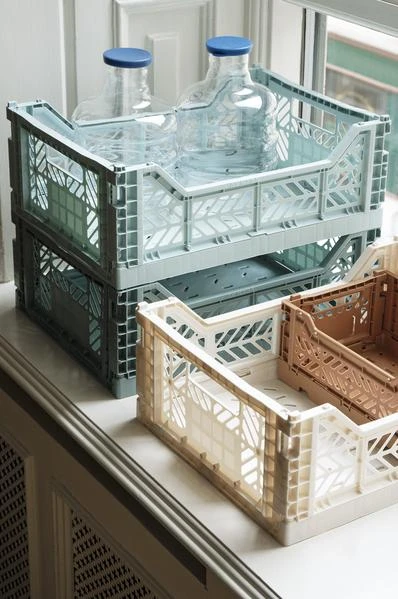 These plastic crates are so useful and versatile you will wonder how you ever managed without them! They are multifunctional and collapsible with a ventilated and stackable design. All you have to do is choose your colour and size combinations and then get your storage in order! SIZE / L40 X W30 X H14.5cm MATERIAL / POLYPROPYLENE