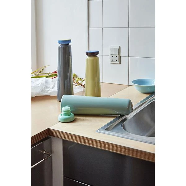 La bouteille thermos Sowden jaune (0,35 L) de chez Hay. Elle convient pour les boissons chaudes et froides ♥ La bouteille isotherme Sowden jaune de 0,35 L est le fruit d’une collaboration entre le designer Georges Sowden et la marque Hay. Cette gourde dont le design s’inspire du mouvement Memphis vous permettra de transporter vos boisons chaudes pendant 12 heures et vos boissons froides pendant 24 heures dans vos déplacements du quotidien. Le designer Georges Sowden est une figure iconique du mouvement Memphis. Existe également en couleur rose, bleu et en plus grand format ici (0,5L). L’avis de l’Atelier Kumo : Un compagnon utile et élégant dans vos déplacements du quotidien ! Dimensions : diamètre : 7 cm, hauteur : 26 cm Composition : acier inoxydable et polypropylène Couleur : jaune Contenance : 35 cl Poids : 0.350 kg Conseil : convient pour les boissons chaudes et froides De part ses lignes élancées et ses couleurs tendances cette jolie bouteille Thermos Sowden égaillera votre quotidien. Le corps de la bouteille Thermos est en acier inoxydable. Son bouchon à vis en polypropylène assure une étanchéité parfaite du produit.