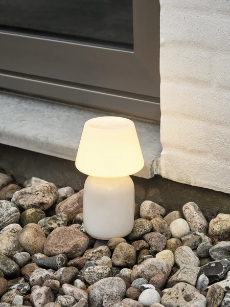Designed by STUDIO 0405, the Apollo Portable Lamp is a portable and free-standing lamp for indoor and outdoor use that creates space and intimacy wherever it is placed. Hand-made in a single piece of opal glass, its rounded curves and unified silhouette are a contemporary interpretation of the classic lamp form. The light source and rechargeable battery are concealed within the shade, illuminating the upper part to provide a warm, ambient glow. Apollo’s portability and deliberate simplicity of design make it suitable for using in many rooms in a domestic environment, as well as cafés, patios and other outdoor spaces.
