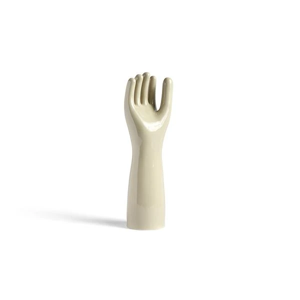 La main décorative couleur beige de la marque Hay ♥ Un bel objet décoratif au design élégant et sculptural. Fabriqué en grès et fini à la main, chaque Deco Hand a une qualité artistique unique en son genre qui le rend parfait pour être exposé sur n’importe quelle table ou étagère de la maison. Ce produit est multifonctions, il peut être utilisé comme élément de décoration, ranger vos bijoux, etc. Cette main à la finition brillante, reflétera la lumière dans votre intérieur. Cette main est également disponible en couleur bleu. L’avis de l’Atelier Kumo : apporter une touche décalée à votre intérieur ! Composition : grès Dimensions : longueur : 10,5 cm, hauteur : 38,5 cm Poids : 1,260 kg Couleur : beige