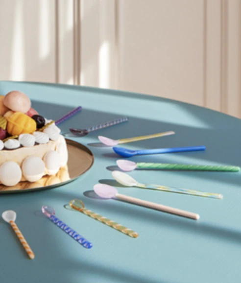 Promo 🎁 HAY Set of 2 Glass Spoons Twist Turquoise Pink πŸ‘