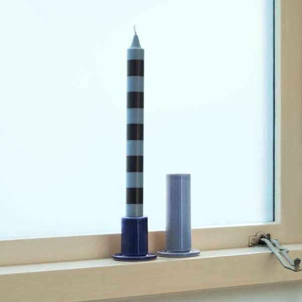 Fabricado en loza con un esmalte semitransparente, el candelabro Tube fusiona un diseño tubular minimalista con una paleta apagada. Diseñado para usarse con velas HAY, el candelabro cuenta con una base circular que equilibra el diseño y atrapa la cera que gotea. Disponibles en diferentes colores, los candelabros se pueden utilizar individualmente o agrupados en diseños contrastantes. Medidas: 5.5 X 10 cm